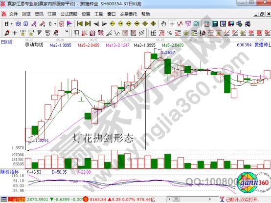 股票燈花拂劍戰(zhàn)法,在任何一個股票軟件上都可以呈現(xiàn),它主要運(yùn)用的就是日K線圖中,主要的兵器就是3、5、13日均線,輔助兵器為KDJ、SAR。股票燈花拂劍的走勢究竟是hi怎么樣的?下面就是該形態(tài)的示意圖。