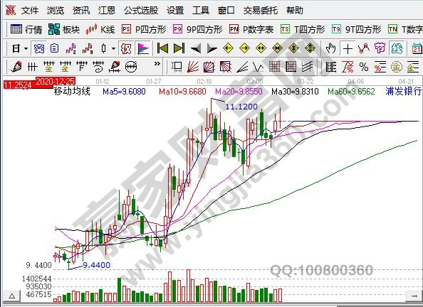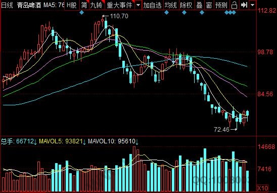 圖中的線包括平均移動線,日線圖中由藍色、紅色、綠色、黃色,表示的是5、10、20、60日移動平均線,不過這個并不是固定不變的,不同軟件設置不一樣的話顏色也會不一樣,有的顏色也會設置成白色、黃色、紫色、綠色。