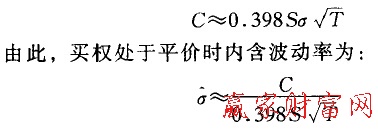 當(dāng)執(zhí)行價(jià)格與股價(jià)相等時(shí),買權(quán)價(jià)格與股價(jià)波動(dòng)率幾乎是線性關(guān)系。Brenne:和Subrahmanyam在1988年經(jīng)過實(shí)證研究表明.買權(quán)處于平價(jià)時(shí).有以下關(guān)系成立: