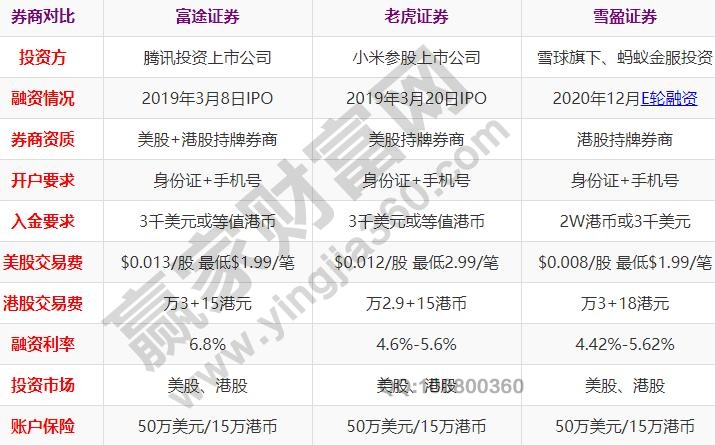 以下是富途證券、老虎證券、雪盈證券的要求對比: