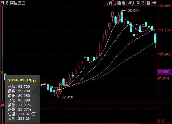 阿里巴巴上市首日股價表現