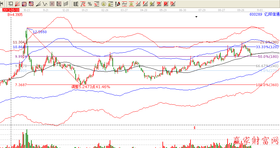 2,根據贏家極反通道來看如下圖,該股近二日回調到黑色生命線位置,星期五剛好回調到50.0%的位置止跌,今日收小陽站在生命線之上。后市關注生命線的支撐力度,不破生命線,很可能起來一小波,破了可以先止損出來。后市需要關注的壓力位是10.80附近。