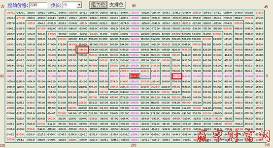 下面用贏家江恩軟件中的江恩四方形來為大家展示他其中的魅力,我們以2001年6月14日的上證指數(shù)2245為起點(diǎn),步長(zhǎng)設(shè)置為-9作圖如下: