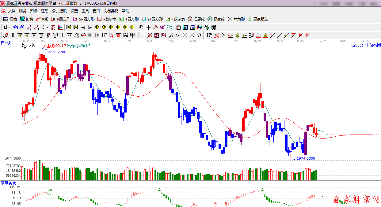 ★依據贏家江恩系統乾坤K線提示: 大盤處于紅色可操作區域,回踩紅色關注線,此線不破,波段看多。