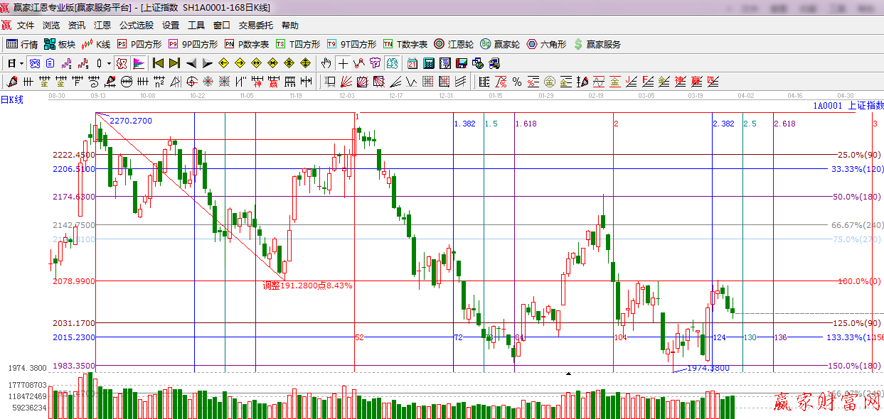 ☆依據贏家江恩系統極反通道提示:大盤收盤破位生命線,量能較昨日略有放大,依據規則,倉位降至3-5成,謹慎為主。