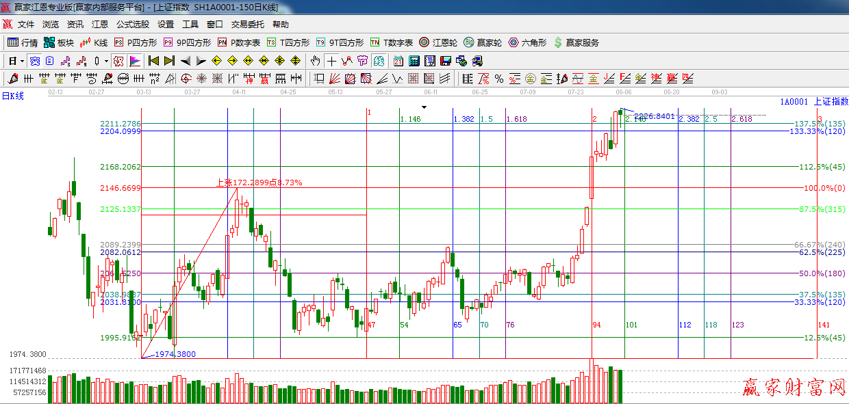 ☆依據贏家江恩系統黃金時間周期線提示:本周時間窗口是8月06日