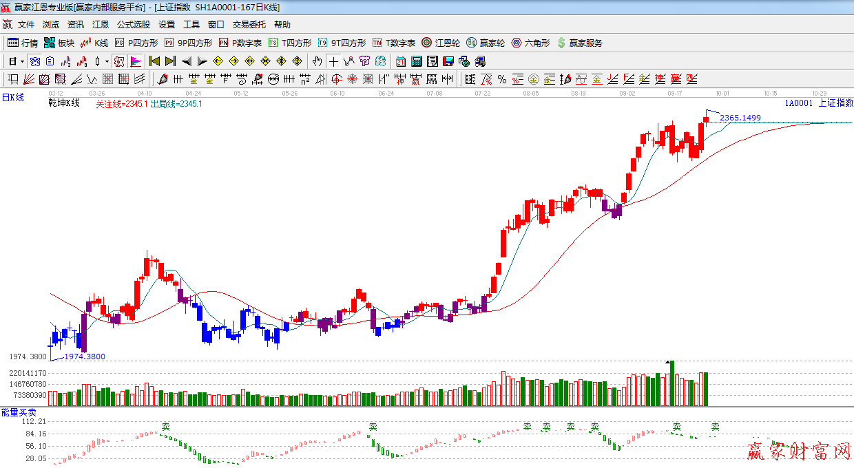 盤面上,早盤、核電、軍工、港口水運等板塊表現(xiàn)較為活躍,午后縮量創(chuàng)出新高2365點(于昨天提到的2362點僅僅相差3點),隨后銀行、券商、地產(chǎn)等權(quán)重出現(xiàn)直線跳水,拖累指數(shù),上方面臨的江恩90度阻力非常重要,需要謹(jǐn)慎對待,操作上,以控制倉位為宜。
