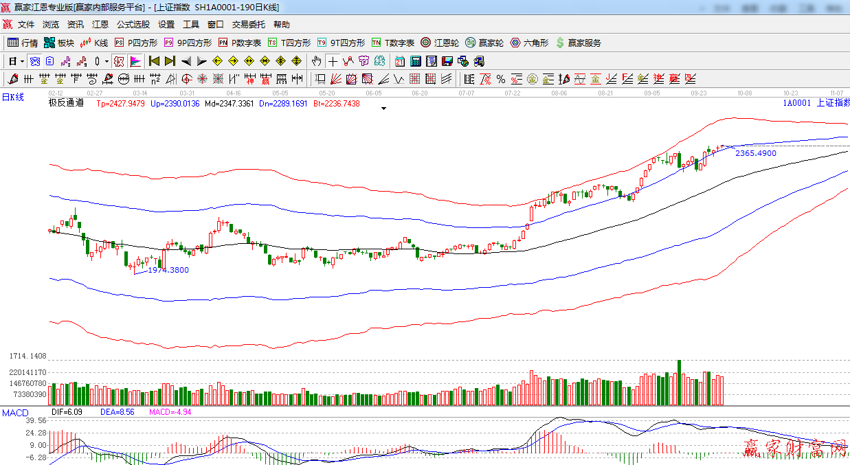 ★依據贏家江恩系統極反通道提示:在極反通道外軌線之上強勢震蕩, 線上支撐,線下壓力,支撐此位 置不破,短線看多。