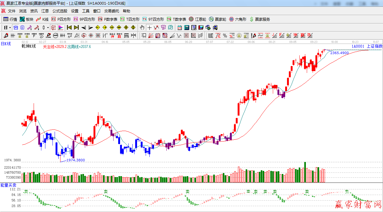 ★依據贏家江恩系統乾坤K線提示:綠色出局線之上,短線看多,波段看多。