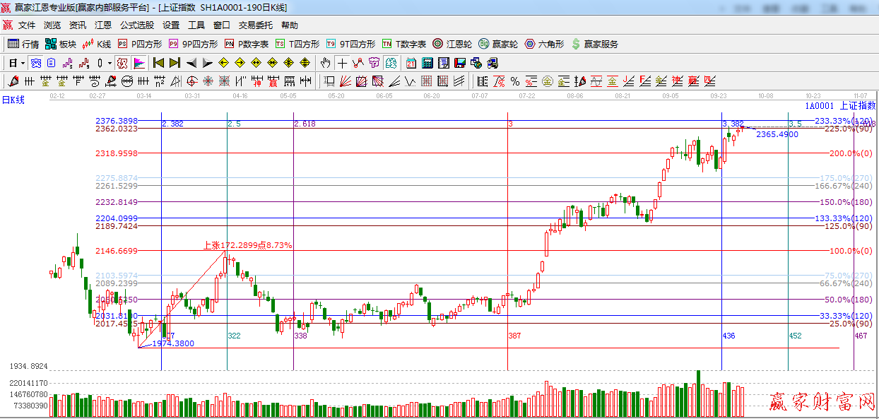 ☆依據贏家江恩系統黃金時間周期線提示:下一時間窗口10月9號,10月15日。