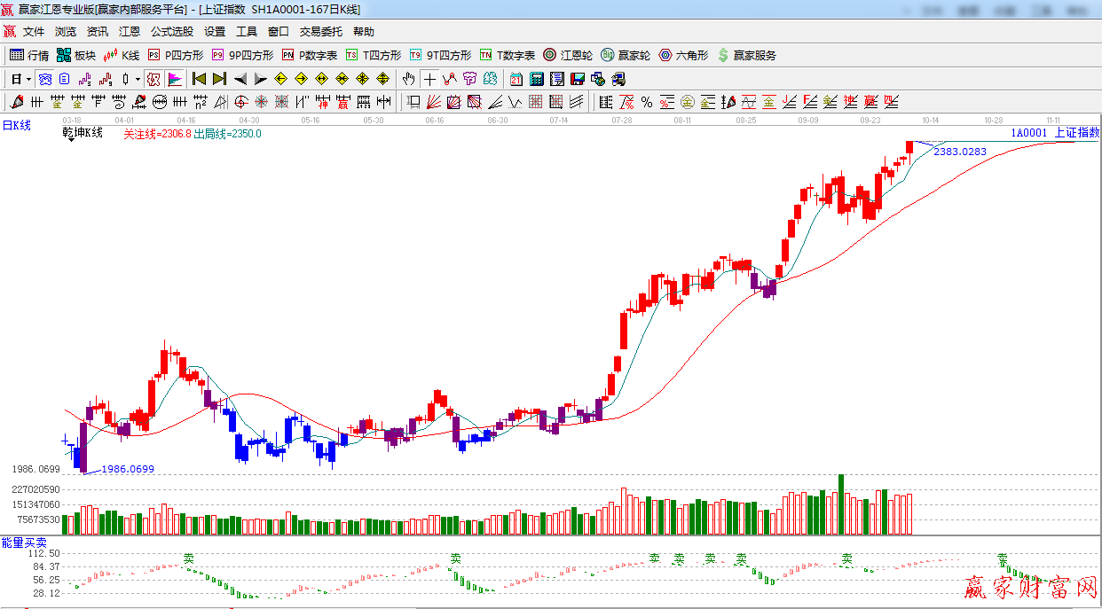 ☆依據贏家江恩系統能量買賣提示:紅色能量柱,與之前出現背離跡象,謹慎看多。