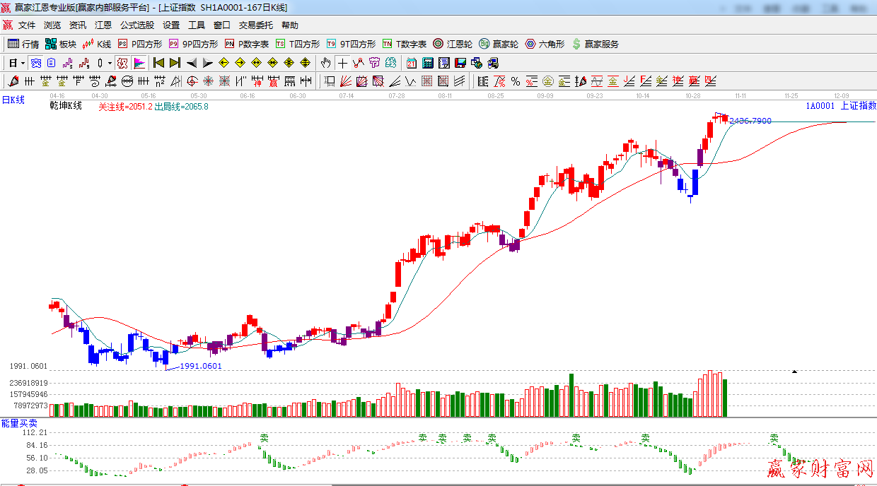 ★依據(jù)贏家江恩系統(tǒng)能量買賣提示:紅色看多能量柱有縮短跡象,短線謹慎看多。