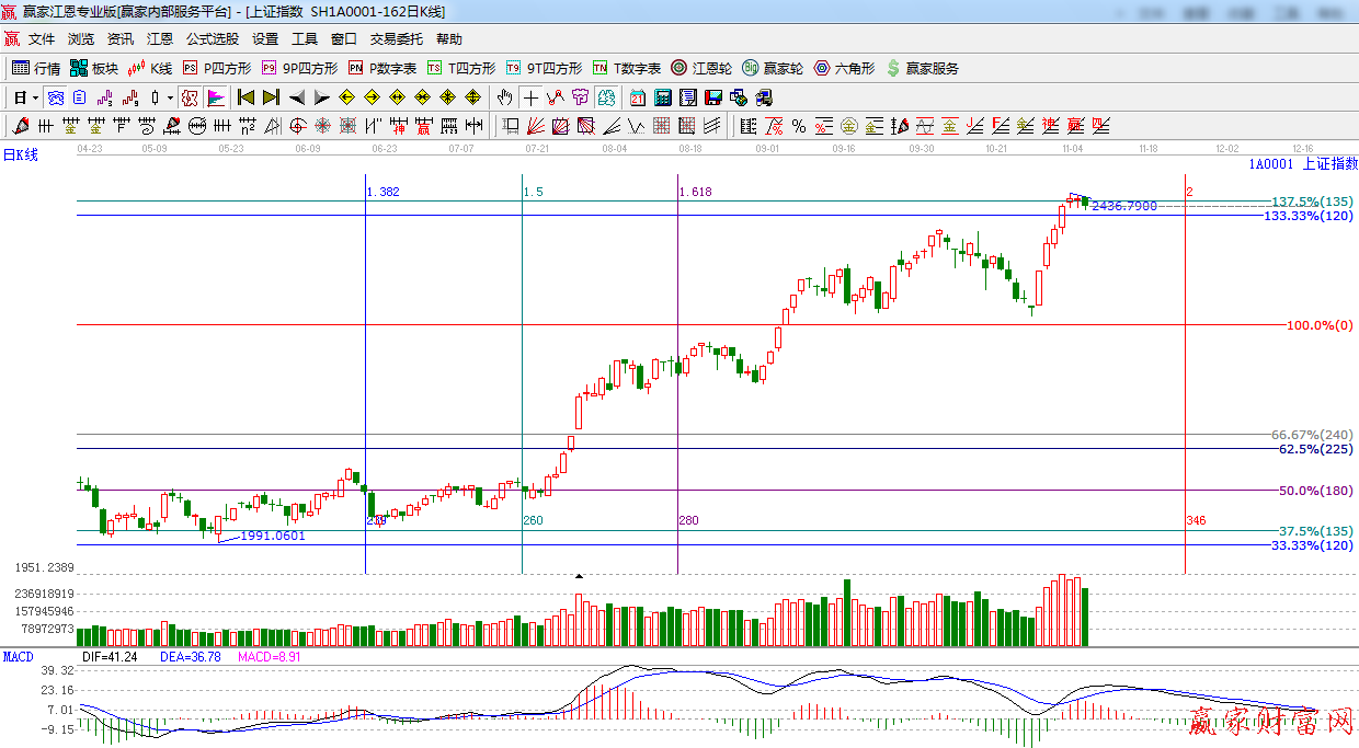 ☆依據(jù)贏家江恩系統(tǒng)黃金時間周期線提示:重點關(guān)注時間窗口是11月24日。