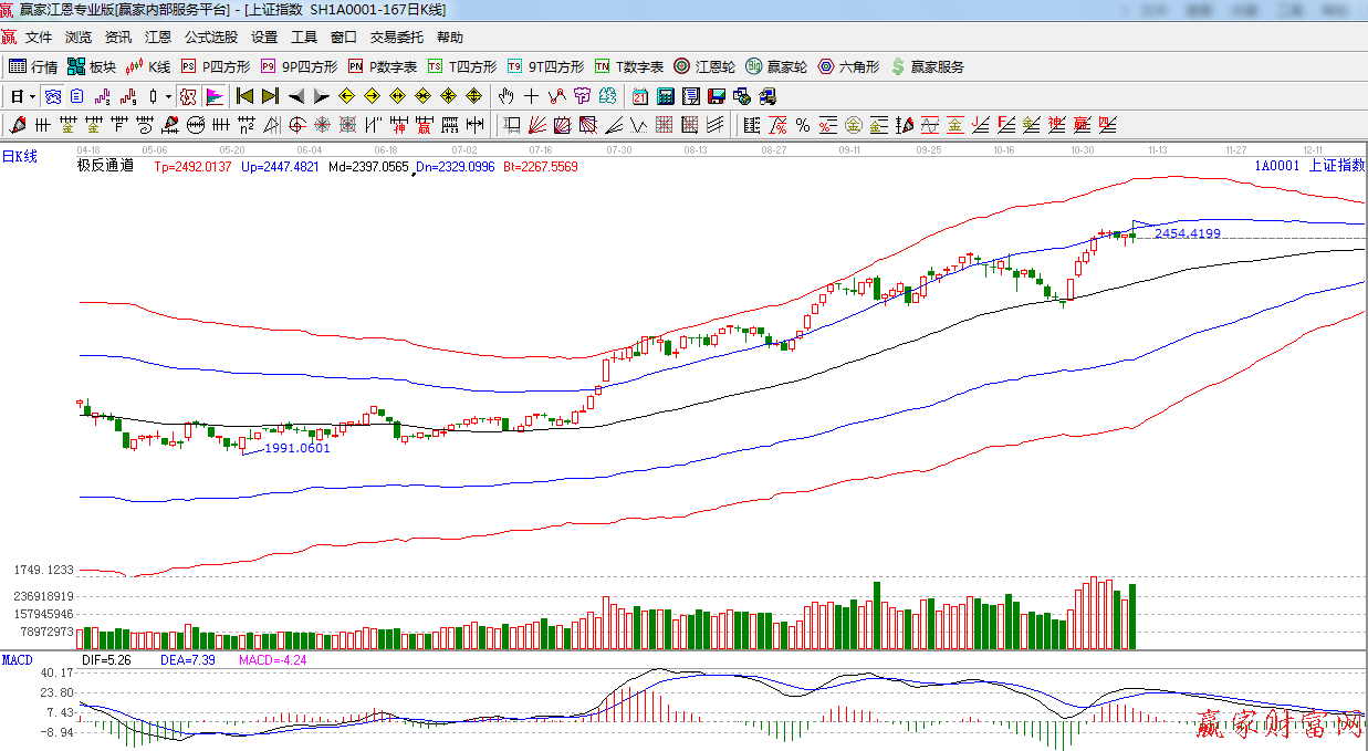 ★依據贏家江恩系統極反通道提示:今日反抽外軌線未果,午后跳水,陰十字星報收,短期謹慎看多。