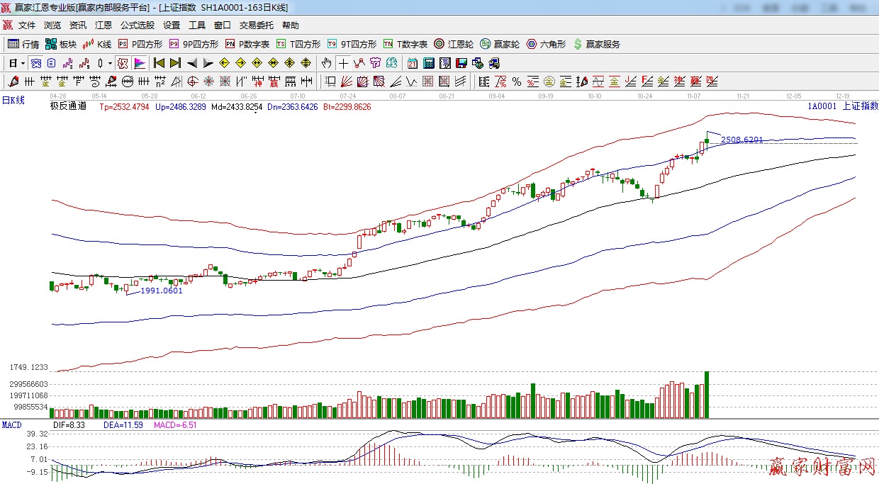 ★依據贏家江恩系統極反通道提示:高位放量十字星,回踩藍色外軌線,外軌支撐2458點,短期謹慎看多。