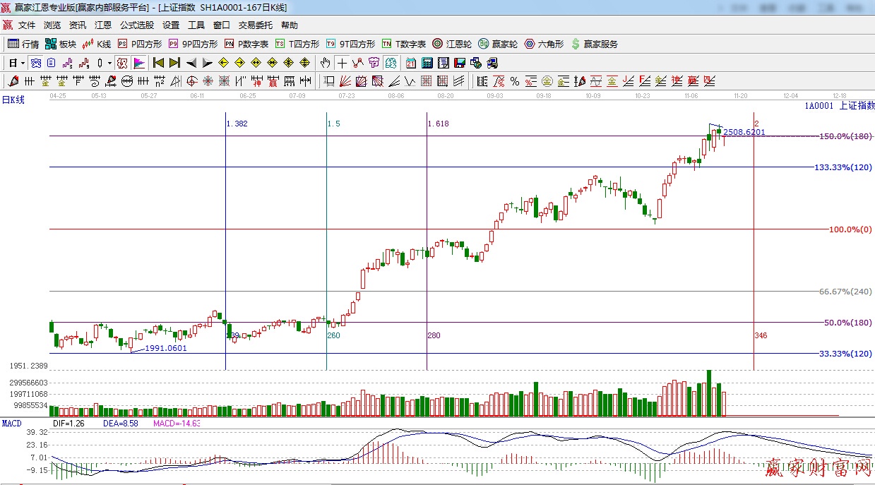 ☆依據贏家江恩系統黃金時間周期線提示:重點關注時間窗口是11月24日。