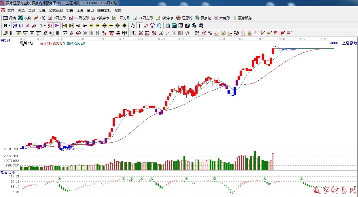 江恩看盤綜述:依據贏家江恩技術工具分析得出:周一兩市受降息的重大利好消息刺激,高開高走,強勢上攻至240度2550阻力附近,昨日是前期提到的時間之窗,短期留意后期量能跟進情況,預計明日將在2550點下方高位震蕩為主,短線操作上追漲需要謹慎,留意前期滯漲個股。