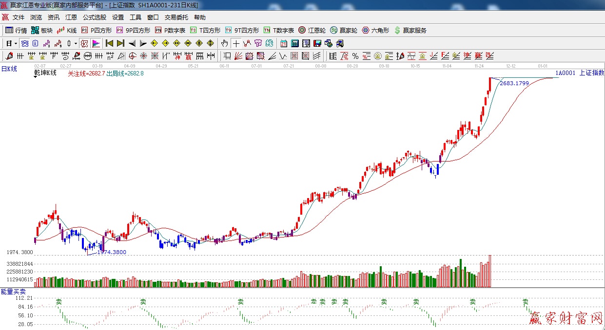 ☆依據贏家江恩系統波段百分比提示:延續強勢,上一交易日收盤點位接近于2倍位置,2690點,2690是周一需要注意的關鍵點位。