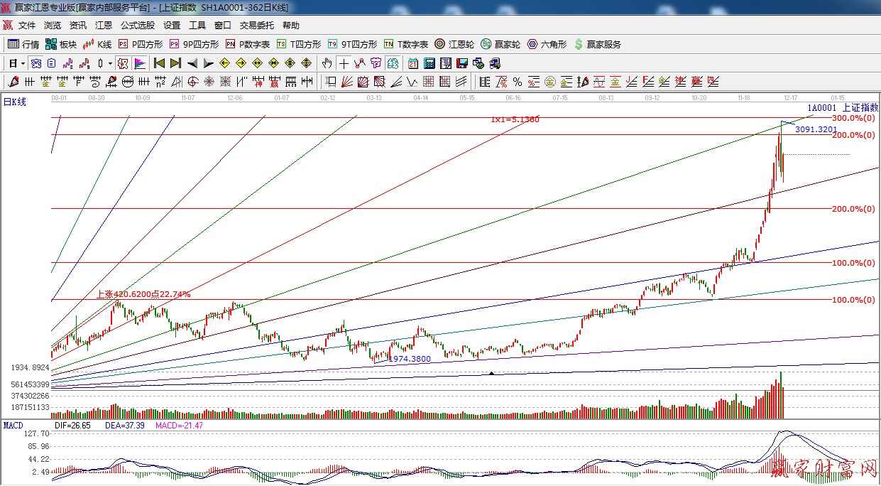 ★依據贏家江恩系統黃金時間周期線提示:11月24日窗口之后,下一時間窗口12月12日(1849點以來的360天)。