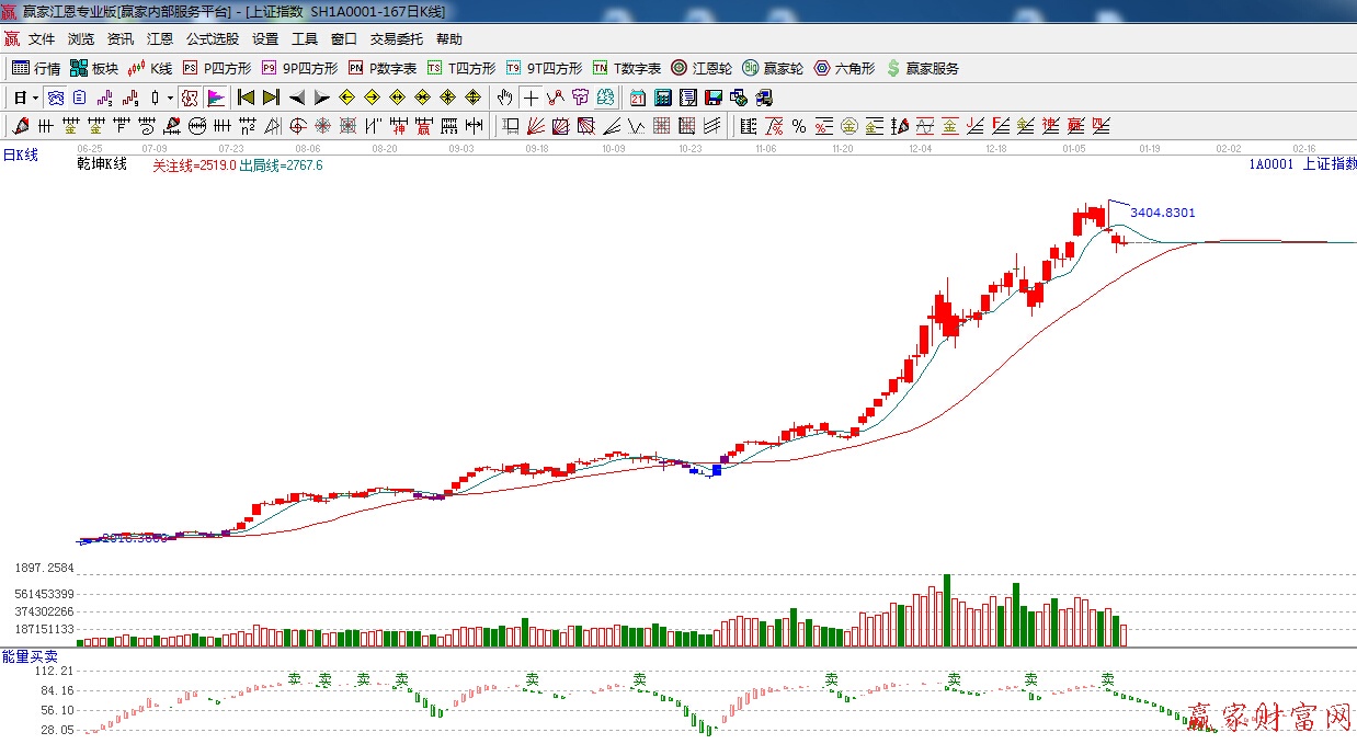 ☆依據贏家江恩理論系統乾坤K線提示:日k線依然處于紅色區域,破位短線出局線,破位短線看空,波段看多。