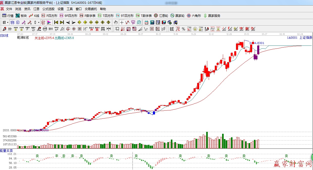 ★依據贏家江恩理論系統乾坤K線提示:紫色警示k線,反彈收復紅色關注線,短線看多。