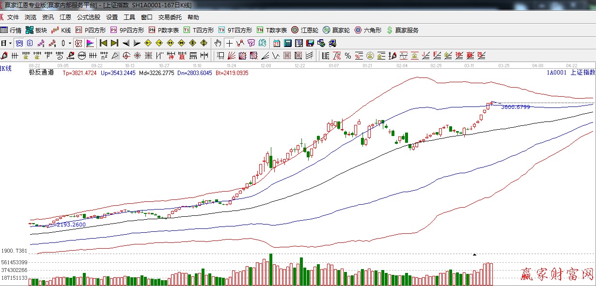 江恩看盤綜述:依據(jù)贏家江恩技術(shù)工具分析得出:今日滬指在3600點(diǎn)整數(shù)關(guān)口之下,極反通道藍(lán)色外軌線之上,窄幅震蕩收十字星,指數(shù)在此位置震蕩屬于正常行為,整理后有望繼續(xù)上行。下一阻力位是江恩0度,3635點(diǎn),90度,3783點(diǎn),煤炭、有色等滯漲藍(lán)籌股,可逢低重點(diǎn)關(guān)注,另外,國資改革,一路一帶等板塊可持續(xù)關(guān)注。