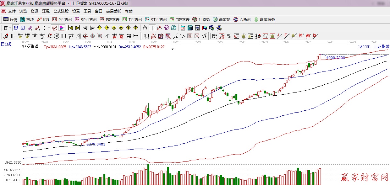 江恩看盤綜述:依據贏家江恩技術工具分析得出:今日滬深兩市早盤出現寬幅震蕩走勢,盤中跳水下探3900點后再次上行,午后一度沖擊4000點大關,整體盤面依舊強勢,市場近期連續上漲積累了過多的獲利盤,加之下周新股申購凍結資金2.5萬億左右,市場將迎來大考,依據江恩工具分析,本月一重要阻力位是江恩270度4081點附近,所以操作上,在享受利潤奔跑的同時保持一種謹慎的態度,逢盤中急漲,要理性對待,切莫盲目追高。