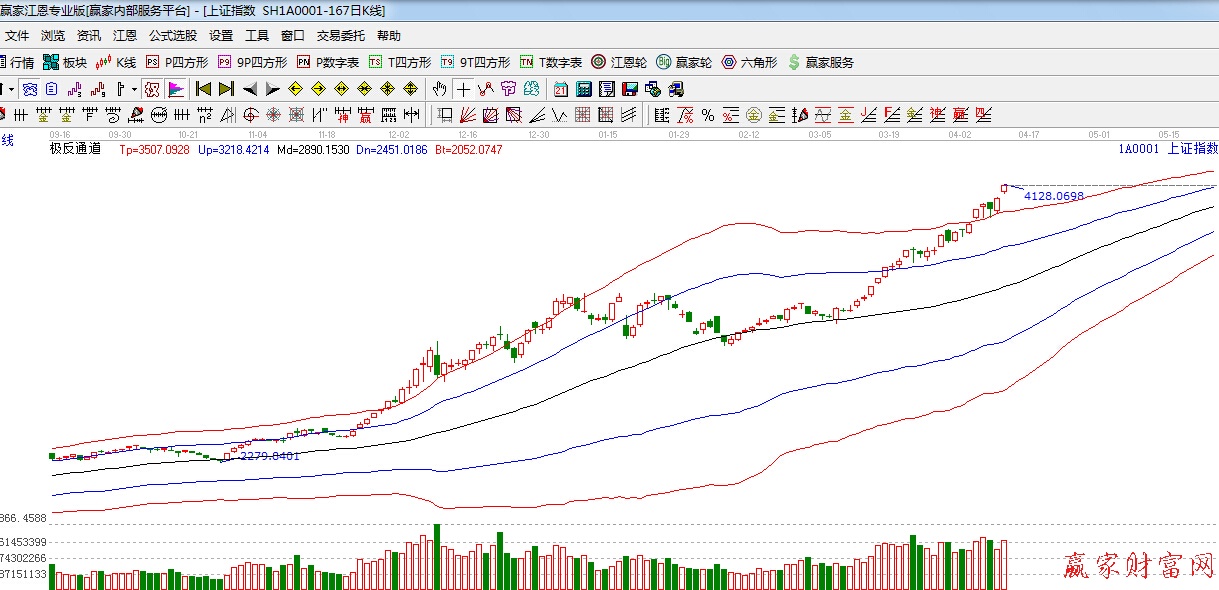 極反通道提示:極反通道紅色外軌線支撐上方,繼續走強,強勢格局延續。