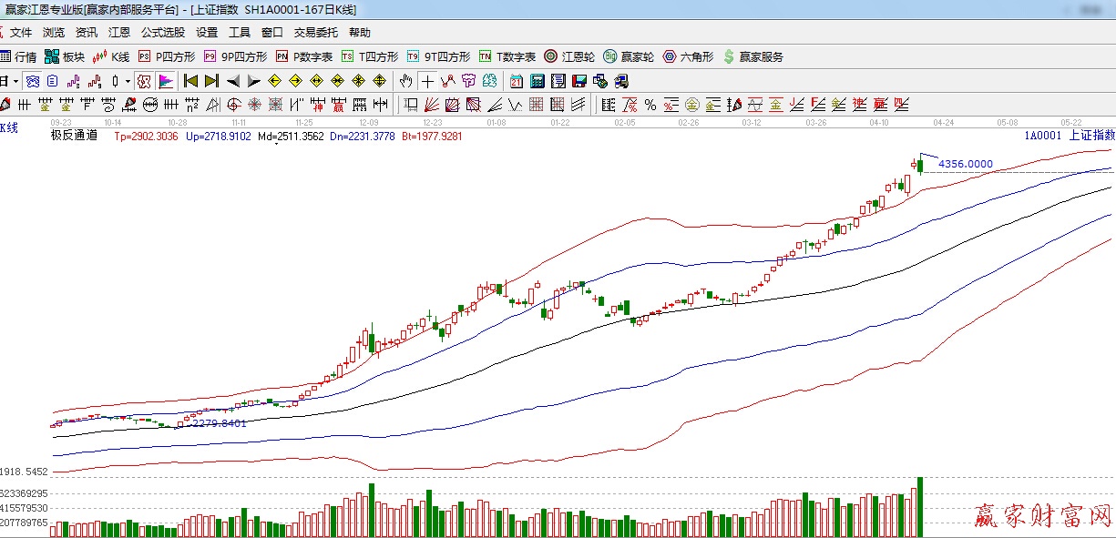 極反通道提示:極反通道紅色外軌線支撐上方,強勢震蕩,短期繼續(xù)謹(jǐn)慎看多。