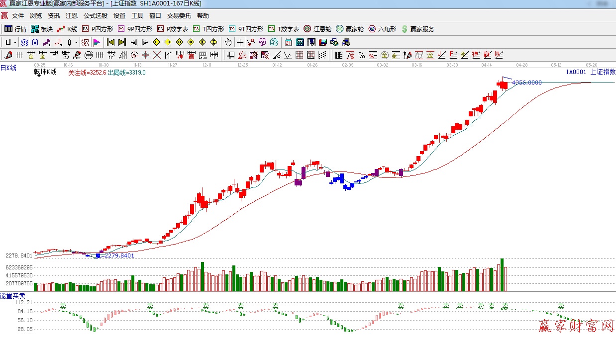 ☆依據贏家江恩理論系統能量買賣提示:有“賣”字出現,指標鈍化,謹慎看多。