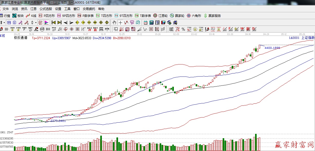 極反通道提示:紅色外軌超強(qiáng)區(qū)域,趨勢(shì)強(qiáng)勢(shì),看多。