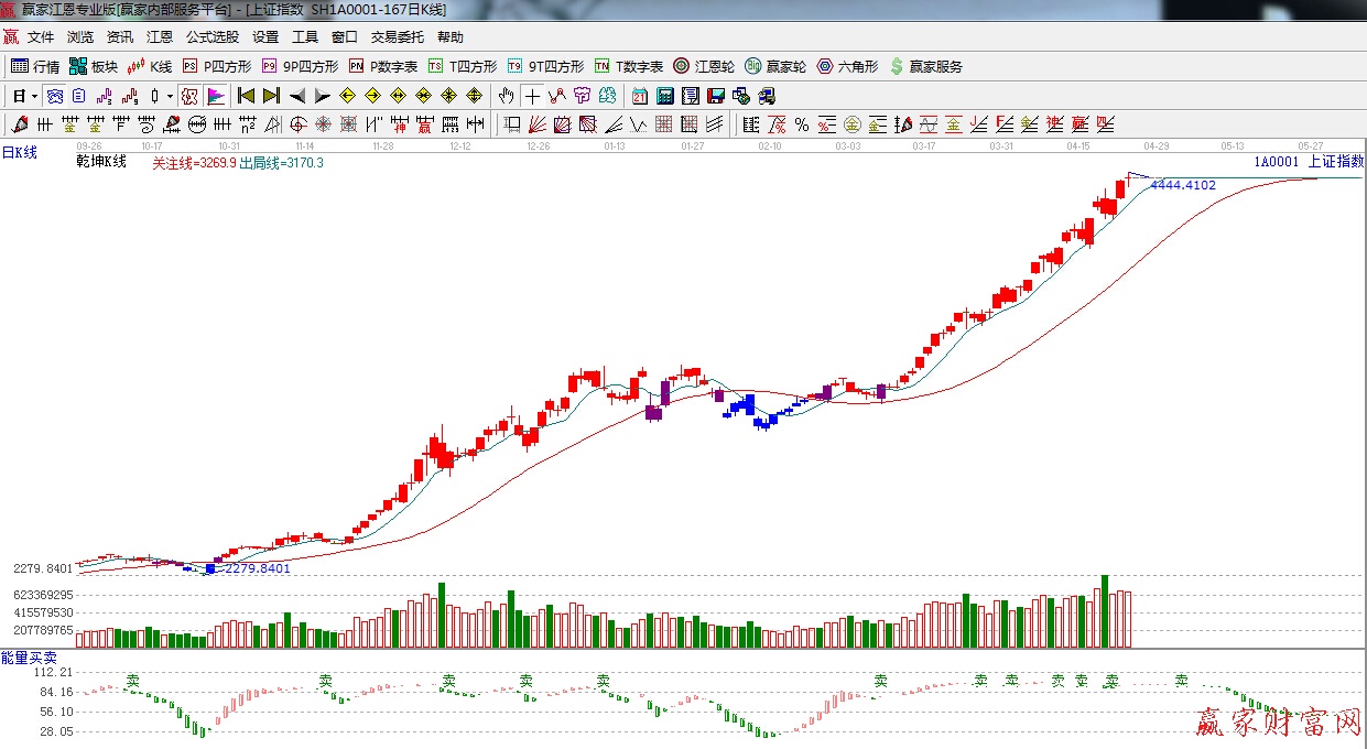 ☆依據贏家江恩理論系統能量買賣提示:有“賣”字出現,指標鈍化,謹慎看多。