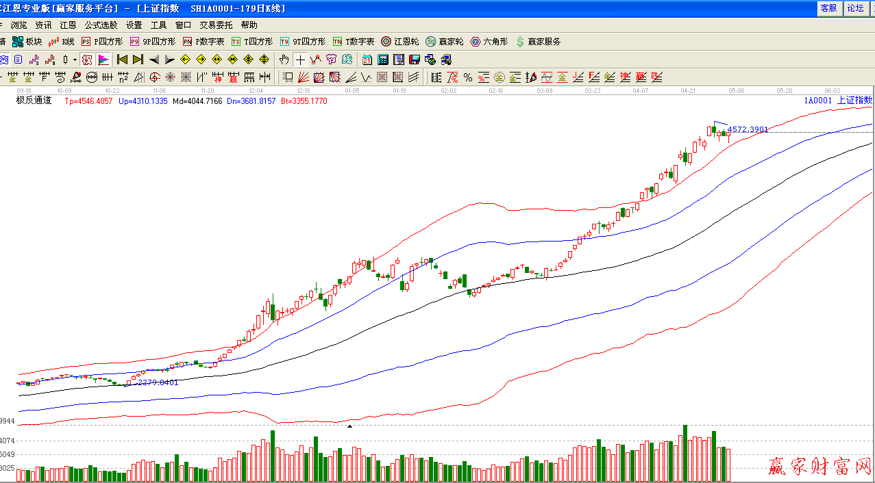 ★依據贏家江恩理論系統極反通道提示:紅色外軌線支撐,趨勢強勢,趨勢看多。