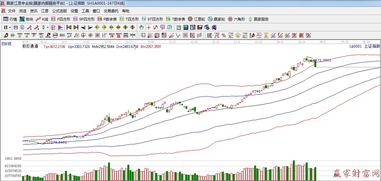 極反通道提示:近日破位紅色外軌線,短線謹慎,下方藍色線支撐是4200附近。