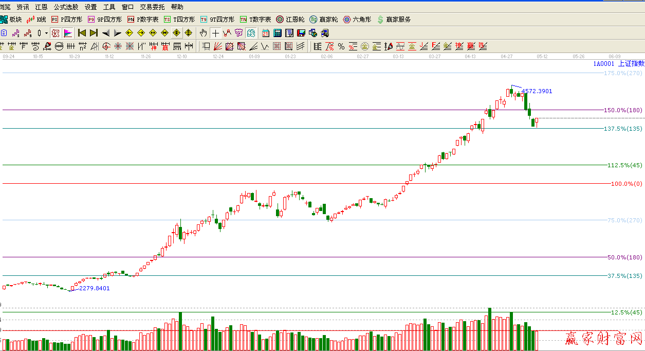 ★依據(jù)贏家江恩理論系統(tǒng)波段百分比提示:滬指如期在江恩135度4088點(diǎn)附近,止跌回升,再次驗(yàn)證了江恩百分比的神奇。135度支撐線之上看多。