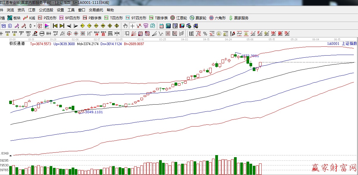 ★依據贏家江恩理論系統極反通道提示:滬指重新藍色外軌線,回踩外軌縣不破,看多。