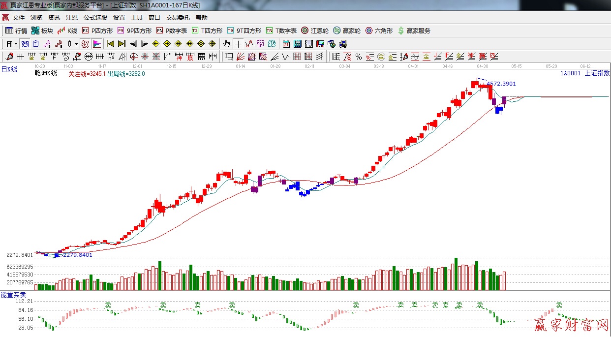 ☆依據贏家江恩理論系統乾坤K線提示:k線有藍色轉變為紫色警示k線,重新收回紅色關注線,短期謹慎看多。