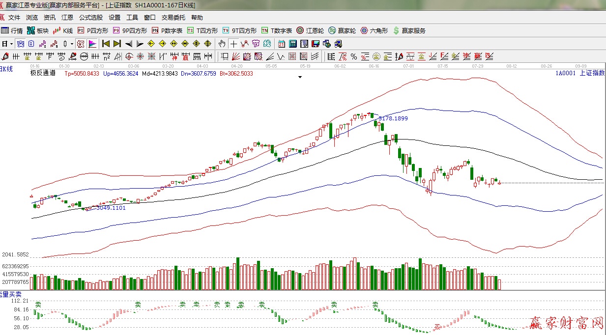 江恩看盤綜述:依據贏家江恩技術工具分析得出:周四早盤A股延續前日下跌走勢,大幅低開一度逼近3600點,在新能源汽車全產業鏈等板塊帶動下,強勢反彈,尾盤煤炭股啟動,遏制了大盤的進一步回落。總體看,市場底部尚未夯實。3600點是一個關鍵點位。此位置整理不破,滬指有望迎來反彈,時間窗口10日左右(周六是立秋),操作上,可以盤中逢跌買入年內漲幅落后的資源股,對于國資改革和軍工板塊中漲幅過大品種要適當的減少。