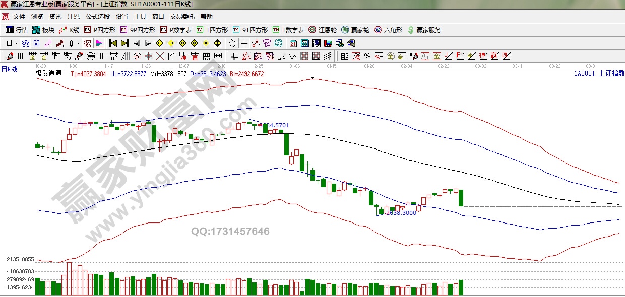 ☆ 依據贏家江恩理論系統極反通道提示:滬指在極反通道弱勢超跌區域,今日再次迎來暴跌。短周期再次破位生命線,短線空。