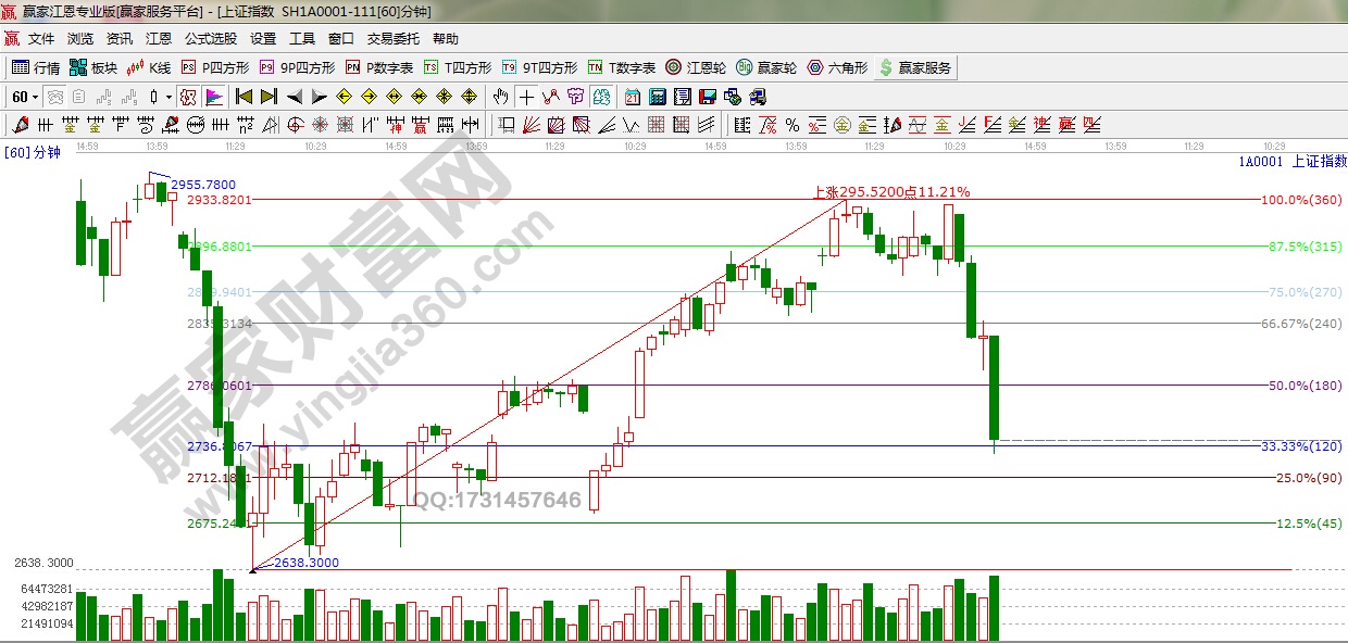 江恩看盤綜述:依據贏家江恩技術工具分析得出:大盤經過連續反彈后,周四迎來放量下跌,在短期市場釋放調整的壓力之后,周五早盤有短線低吸差價機會,但在時間窗口位置放量大跌,對于市場人氣嚴重破壞,穩健者逢反抽降低倉位,靜觀其變為主。