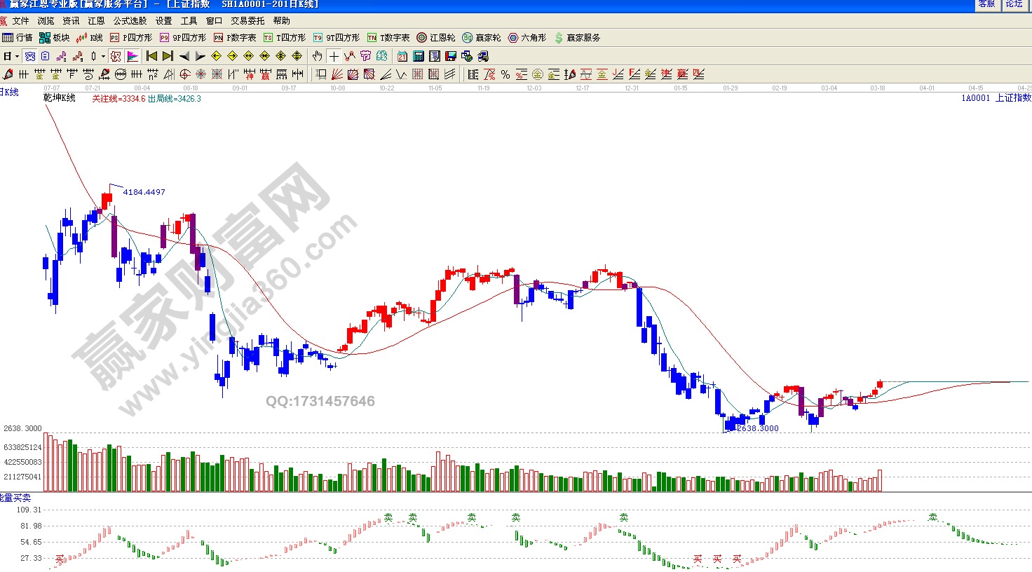 ★ 依據贏家江恩理論系統乾坤K線提示:k線處于紅色關注線之上,依據規則紅色線不破,看多。