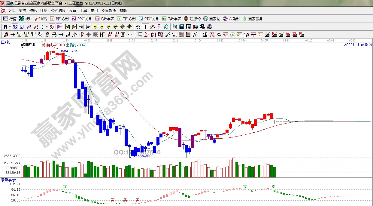 ☆  依據贏家江恩理論系統能量買賣提示:紅色能量柱縮短,并有“賣”字出現適當謹慎。