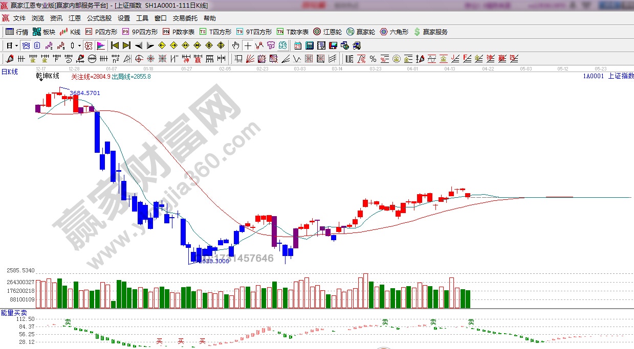 ☆  依據贏家江恩理論系統能量買賣提示:紅色能量柱縮短,并有“賣”字出現適當謹慎。