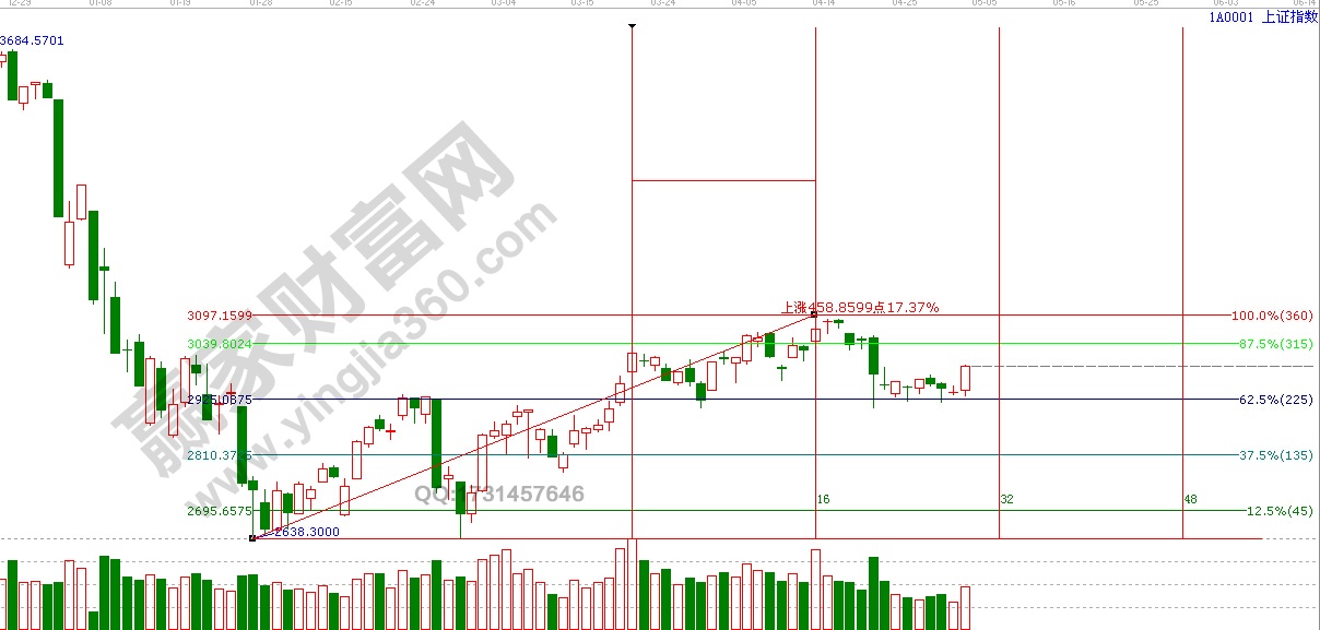 ★ 依據贏家江恩理論系統江恩波段百分比線提示:滬指突破了2977點,2977點轉換為支撐,阻力依然是3000點,3030點