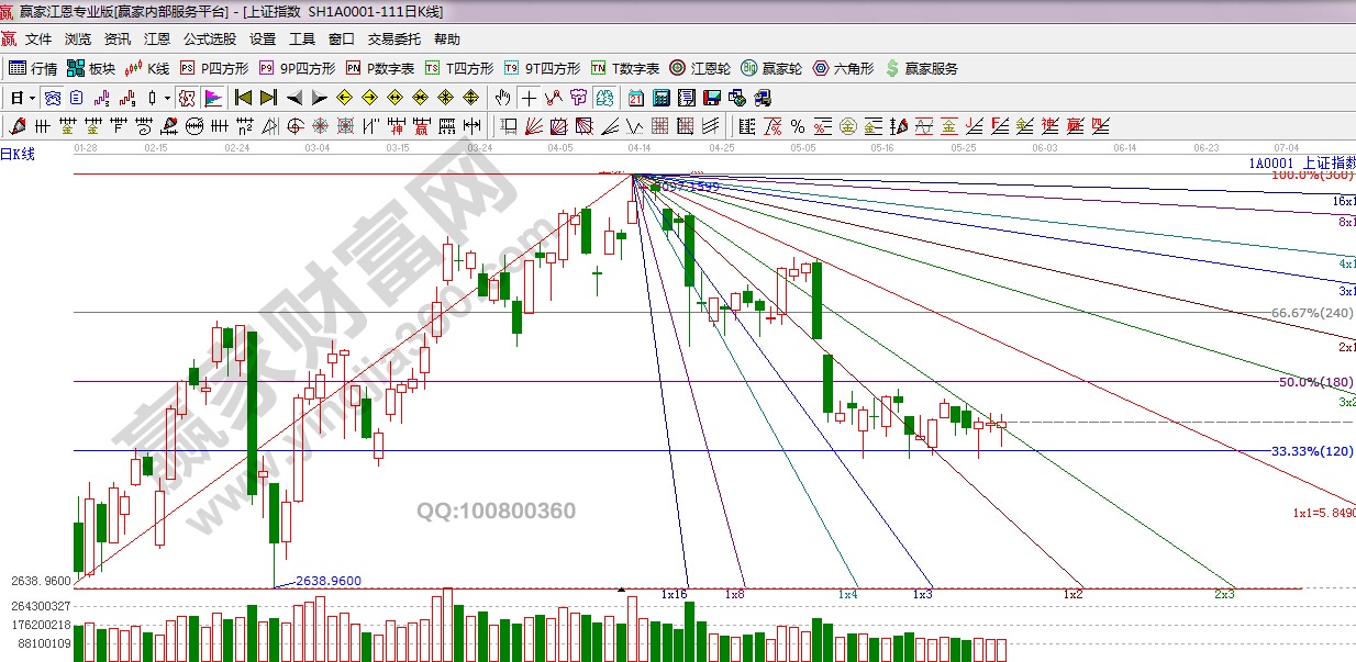 江恩看盤綜述:依據贏家江恩技術工具分析得出:周二,5月31日是大盤的下一個時間窗口,價格上,大盤明日關鍵點依然是2830點,此位置如能放量收復,向上趨勢才能打開,如不能有效突破,謹防主力被迫再次挖坑,操作上,在方向未明確前,繼續控制倉位,同時耐心等待抄底良機。