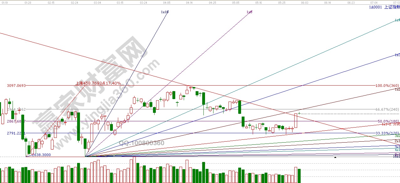江恩看盤綜述:依據贏家江恩技術工具分析得出:股指大幅上行后,短期面臨生命線,以及江恩角度線1x2線的阻力,價格在2945點附近。指數小幅整理再次上行需要重點留意此位置,如不能放量收復,預計大盤短線將再次震蕩整理為主,操作上,建議重點關注中期業績大幅預增標的個股。