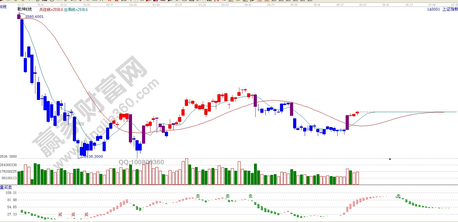 ★依據贏家江恩理論系統乾坤K線提示:紫色k線,轉入紅色k線,看多
