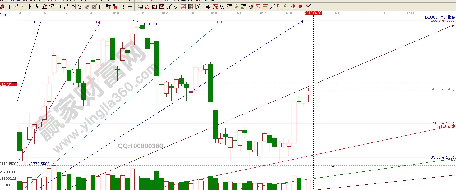 ★依據贏家江恩理論系統江恩波段百分比線提示:接下來短期阻力位依然是2950點。以及上升角度線的1x2線。