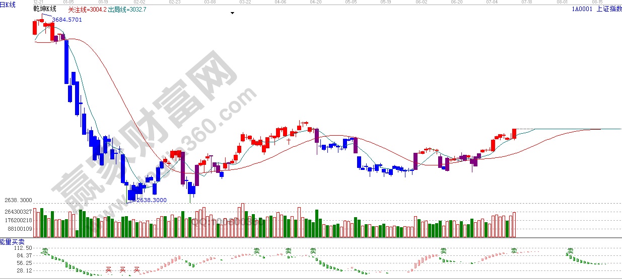 ★依據(jù)贏家江恩理論系統(tǒng)乾坤K線提示:紅色k線,多頭區(qū)域,出局線之上,依據(jù)規(guī)則此線不破,短線將繼續(xù)看多,破位短線空。