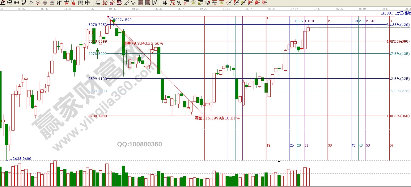 ★依據贏家江恩理論系統極反通道提示:滬指日線突破藍色外軌線3055點,短周期阻力關注3078點。